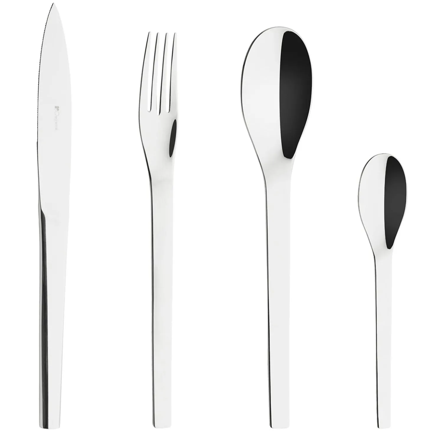 The Mirage Cutlery Collection From Degrenne Offers A Modern And Refined Register. The Rectilinear And Minimalist Design Emphasizes The Originality Of The Knives, Available In Two Versions. The Innovative Shape Of The N°1 Knives Allows You To Maintain A Completely Smooth Surface, Without Any Visual Roughness, For Original Tables With A Unique Character. The Modern Proportions Of The N°2 Knives Are More Consensual Without Losing Their Particular Minimalist Design. Made Of 18-10 Stainless Steel, High Quality And Resistance, They Are Easy To Maintain. The 100 Piece Box Package Consists Of 12 Table Forks, 12 Table Spoons, 12 Table Knives, 12 Coffee Spoons, 12 Cake Forks, 12 Dessert Forks, 12 Dessert Knives, 12 Dessert Spoons, 1 Serving Spoon, 1 Serving Fork, 1 Tart Server And 1 Ladle In A 3-Drawer Storage Chest.