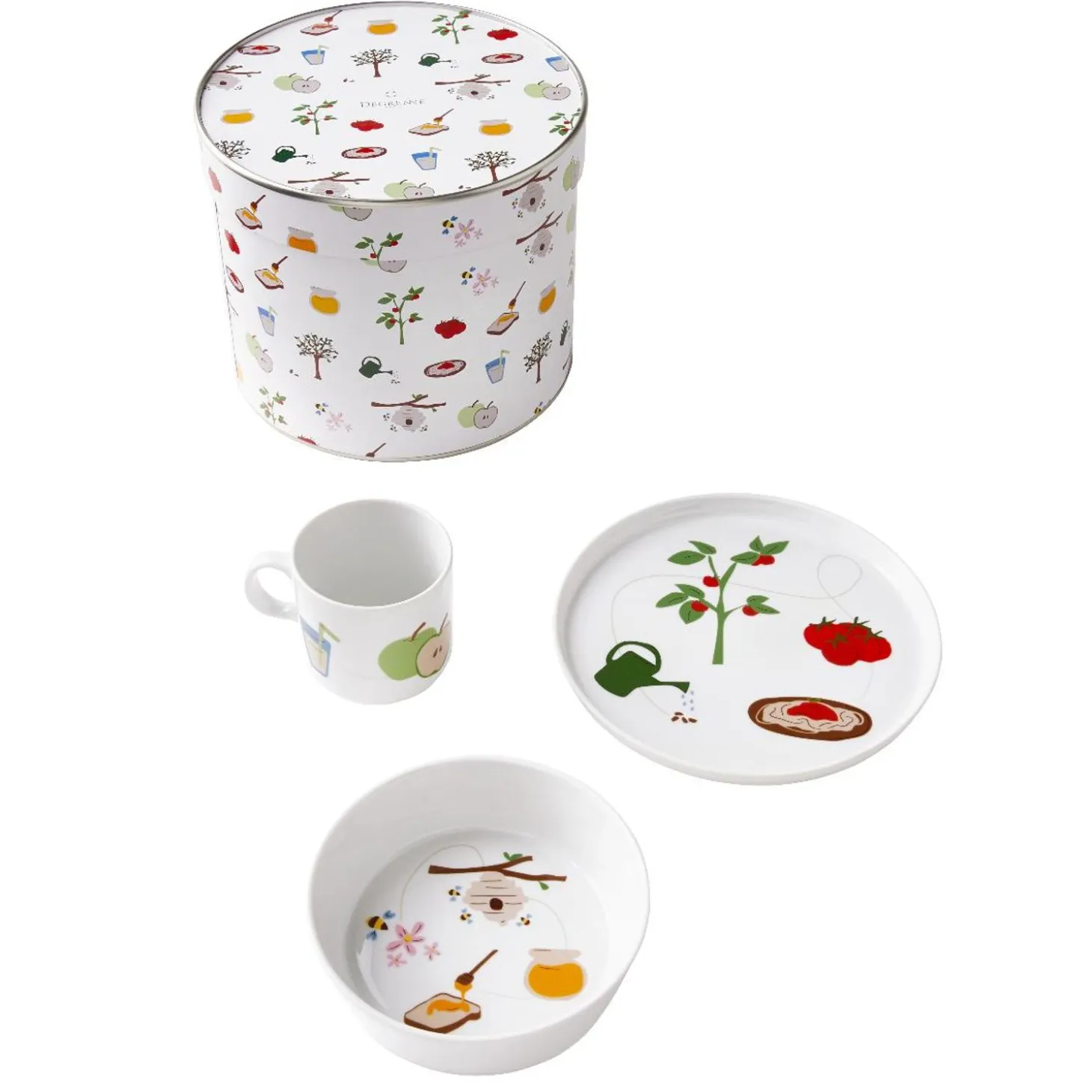 Collection That Allows Children To Understand What Is On Their Plates And To Begin Their Learning Of Beauty And Goodness. Meal Time Becomes A Time For Sharing And Exchange. Parents Can Easily Tell A Story To Their Children With This Collection With Fun And Colorful Graphics, Illustrating The Origin And Journey Of Their Favorite Foods. The Eveil Gourmand Collection Is Made Up Of A Plate, A Bowl, A Mug And Four Place Settings. A Set Of Tableware For Children Who Want To Learn More About Where Their Meals Come From. The Box Is Not Recommended For Children Under 3 Years Old.